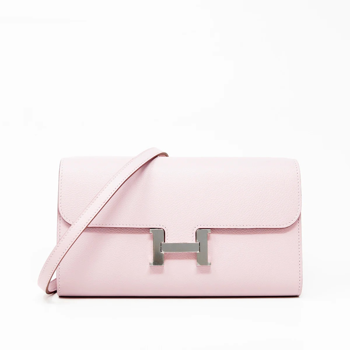 Mauve Pale Evercolor Constance To Go Hardware Palladium Stamp B (2023) Pristine, protective stickers intact $7,052 // https://jadorecouture.ca/collections/hermes/products/hermes-mauve-pale-evercolor-constance-to-go