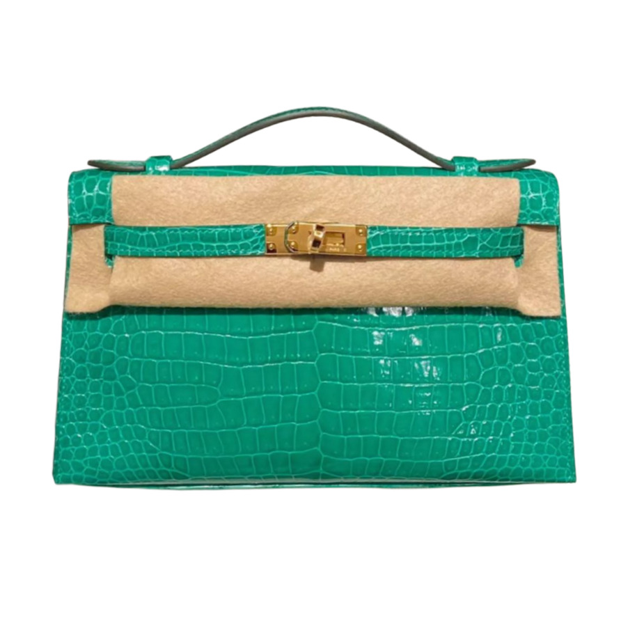 Kelly Pochette Porosus Crocodile Shiny Vert Jade O6 Ghw N/A