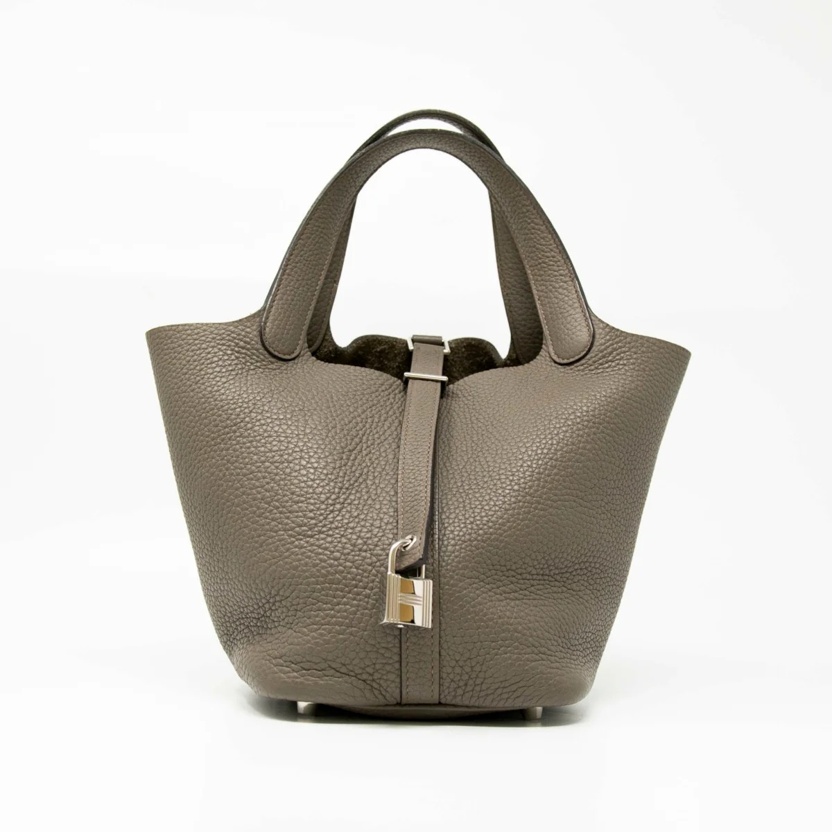 Etain Clemence Picotin 18 Hardware Palladium Stamp X (2016) Very good, minor scratches on hardware, minor corner wear $3,564 // https://jadorecouture.ca/collections/hermes/products/hermes-etain-clemence-picotin-18