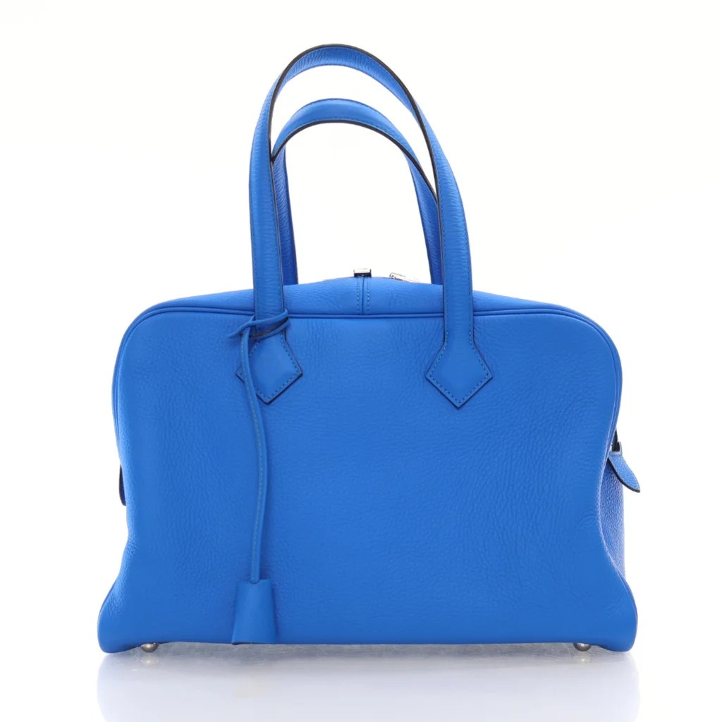 Hermes Victoria 35 Blue Zanzibar Clemence—L-SYNXP1——2430 USD // https://ldj.com/home/products/hermes-victoria-35-blue-zanzibar-clemence-p-square-stamp-2012